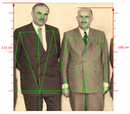 Tampoco es una foto demasiado útil pues carece de elementos comparativos. Aún así nos permitió encontrar el camino para descifrar la altura del profesor. A mano Izquierda de Neufert se encuentra Kemal Ahmet Aru director de la universidad y precursor del archivo fotográfico que lleva su nombre. Fuente de la siguiente foto: