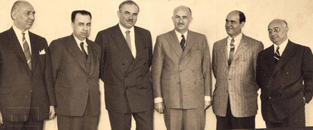 En la segunda, el arquitecto aparece con el claustro de la ITU. De izquierda a derecha : Sabri Oran, Said Kuran, Prof. Neufert, Kemal Ahmet Aru, Mukbil Gokdogan and Hamit Dilgan (1955).