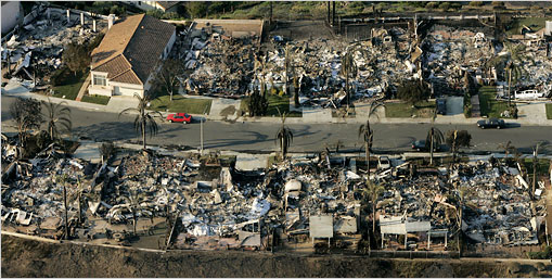 La casa de catalán José Galmes residente en Rancho Bernardo se salvó de la ‘quema’  porque las cenizas que cayeron en su tejado de arcilla no prendieron la estructura. Todas las viviendas anejas quedaron calcinadas.(ver foto)