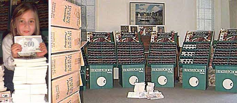 La hija de David Phillips muestra uno de los cupones. A la derecha parte de la mercancía . Fuente