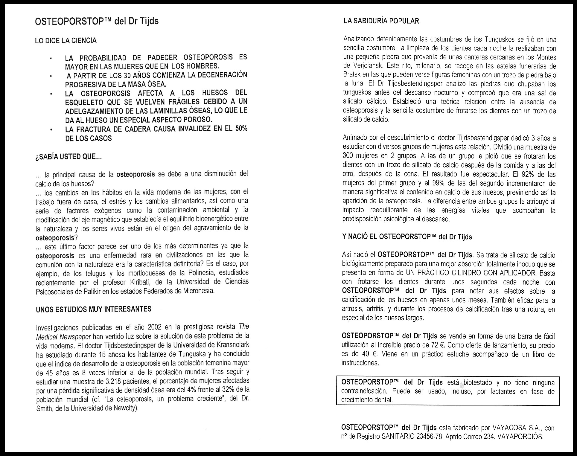 El caso del OSTEOPORSTOP del Doctor Tijds.