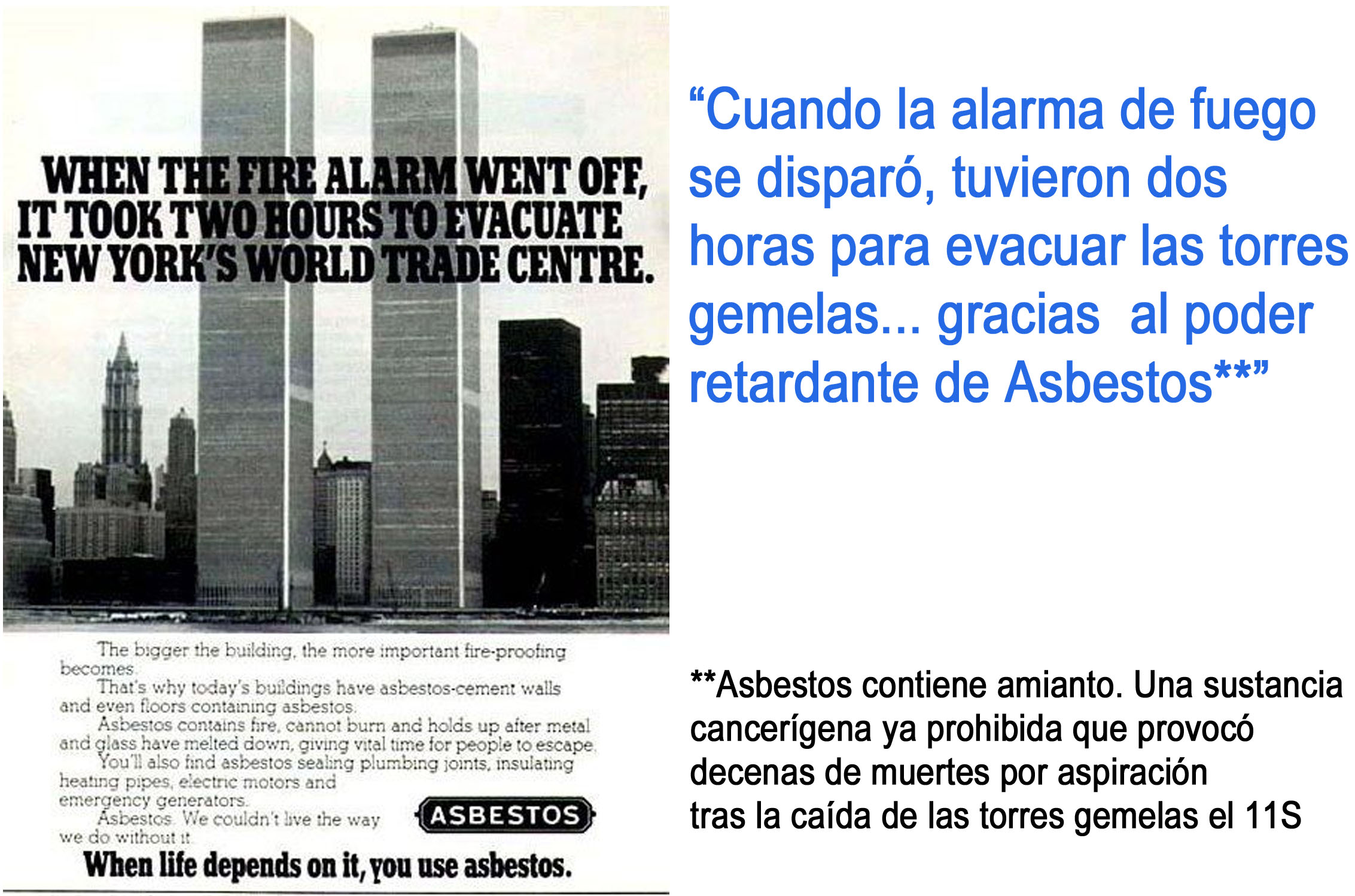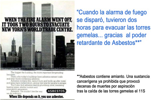 Si un guionista de South Park tuviera hoy que ambientar un capítulo en Nueva York, seguro se inspiraría en esta campaña. La historia vapulea con grandes dosis del humor negro a esta empresa y por partida doble. Eligiendo un material que se demostró insano y cancerígeno y seleccionando el peor de los escenarios posibles. El mensaje hoy parece decir: «Tranquilo, si no te mata el fuego, te matará el amianto, Bin Laden, o las hordas de conspiranoicos…»