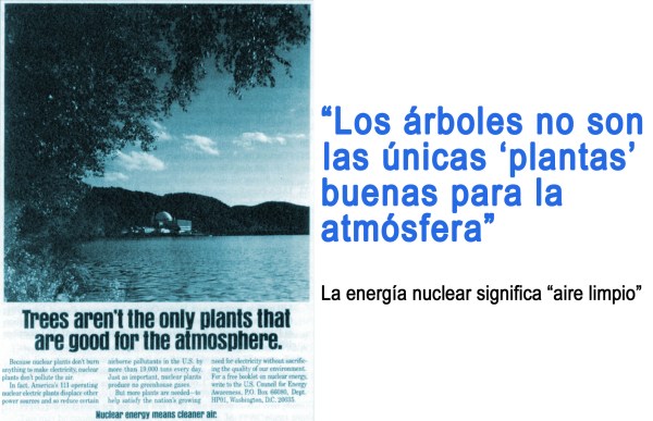 Campaña institucional pronuclear del Consejo de Energía Norteamericano en varios medios durante la primavera de 1999. Si bien estadísticamente ofrece una afirmación poco cuestionable y llamativa, los grandes accidentes la convierten en ironía al servicio antinuclear. Las plantas nucleares son tan ‘buenas’ para la atmósfera como la Ciudad Encantada de Cuenca o el monolito de «2001 una odisea en el espacio» …eso siempre y cuando no ocurra en ellas ningún desgraciado accidente.