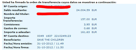 No me importa hacer público mi patrimonio. Eso solo le pasa a los que creen que no se lo han ganado justamente. Restando lo que me queda de pagar de hipoteca al valor de compra de mi casa entre dos (gananciales) y sumándole los ‘activos’ me salen 314.000€. El 0,05% de todo eso son 157€… una décima parte de lo que me han subido los impuestos este año para que todo vaya a peor o a los Bancos (ojo! a la comisión de BANESTO)