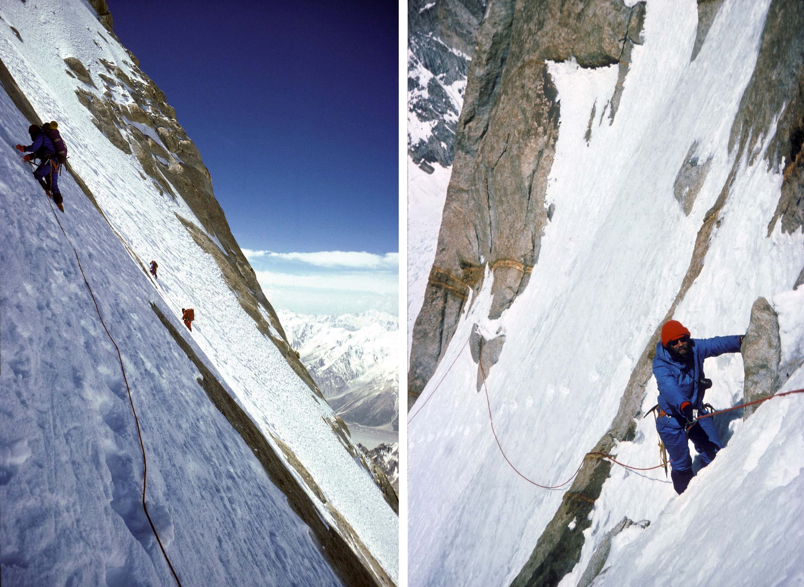 El segundo intento se produciría por el flanco oeste, no tan vertical pero tampoco menos peligroso por la presencia de grandes ‘seracs‘ mezclados con roca y hielo. Por ahí el grupo logro establecer un campamento a 6.400 metros de donde poder organizar el asalto final a la cumbre oeste para más tarde acometer la principal.