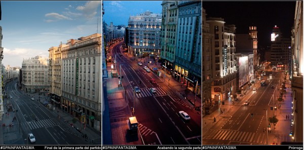 On July 11, during the World Cup’s final match among Spain and Netherlands an army of spanish photographers went out to take pictures of the empty streets that more than 18 millions TV-viewers left. More than 200 volunteers from every place in Spain took advantage of the absence and portraited a desert country. This is the result.