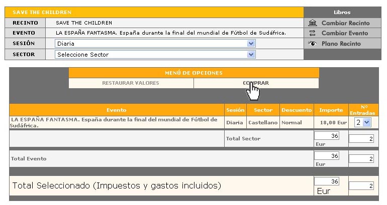 Elige el número de butacas/libros que quieras y pincha en Comprar. Recuerda. Una butaca, un libro.