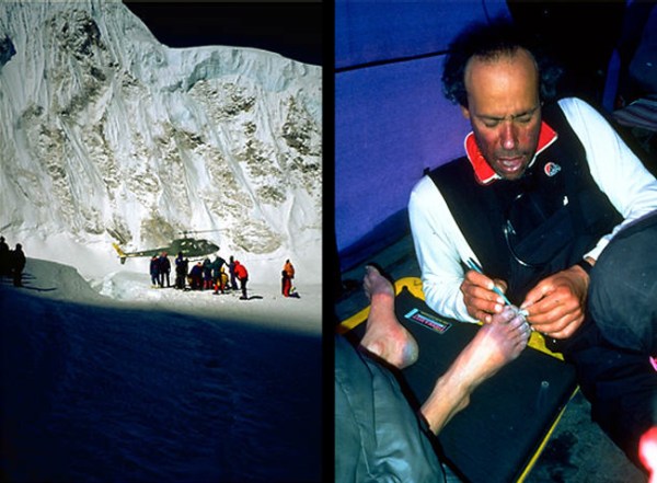 Primeros auxilios de Beck a la llegada al campo III. Fuente