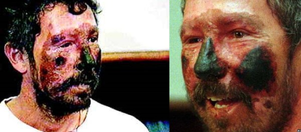 Aspecto que presentaba el rostro de Beck unas horas y unas semanas después. Fuente, 2